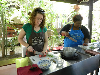 It doesn’t seem as though we are only 3 days into our trip being that each day has been full of exciting opportunities and experiences. Yesterday, which happened to be Thursday for us, consisted of learning more about the Thai culture in regards to their food and Buddhist religion. We were taken to a local food market where we were introduced to the different ingredients used most commonly in Thai dishes. Particularly the differences between the types of basil, ginger, eggplants, uses of coconut, and noodles. It was very fascinating to see how the market operated and the variety of items you will find there. After the market, we headed to the Chiang Mai Thai Cooking School where we created 4 authentic dishes we prepared individually. The staff of the cooking school were very helpful and eager to teach us. My favorite dish that we made was the Pad Thai, but I’m not a huge fan of the tofu, rather strange taste/texture. The green curry was very hot, I don’t do well with spicy food.